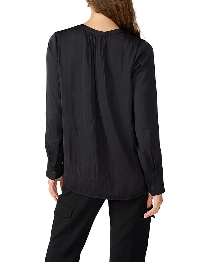 - Pair your jeans or shorts with the Sanctuary™ Lizzie Sateen Tunic for a statement everyday look. The top has a crinkly fabric that enhances the relaxed silhouette. The pull-on style tunic has a band collar with split V-neckline, long sleeves with button cuffs, and a curved high-low hemline for a classy look.
