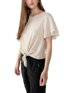 - Want to bring a charming update on your casual style? Then, get your hands on the Sanctuaryâ„¢ Tied Together Forever Top today! It is fabricated in cotton slub jersey and features a timeless crew neckline coordinated with poplin flutter sleeves for a feminine vibe.